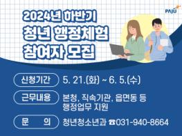 파주시는 오는 21일부터 6월 5일까지 2024년 하반기 청년 행정 체험 참여자 20명을 모집한다고 밝혔다. 파주시 청년 행정 체험은 공공기관 현장 실무 경험과 진로 탐색의 기회를 제공하기 위해…