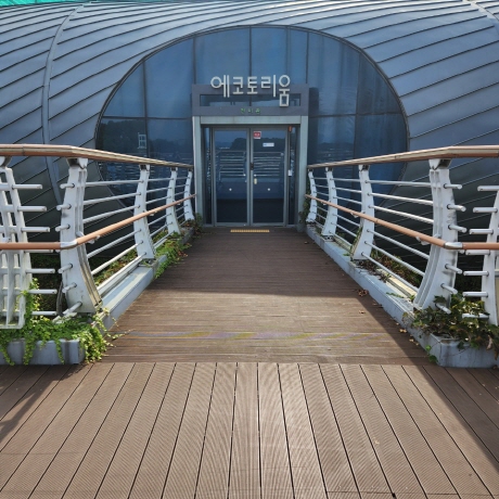 ‘에코토리움 전시관’은 한빛마을 2단지 건너편의 공원 입구와 공원주차장 근처 상가 건물이 있는 대로변의 입구로 들어오면 있는 하늘다리 중간에 있다. 호수와 주변 경치를 바라보면서 예술문화에 접근할 수 있도록 자리 잡고 있다.