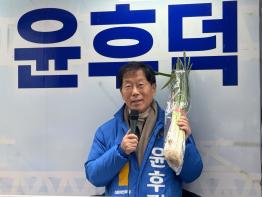 이어 윤후덕 후보는 발대식 오는 길에 마트에 들러 샀다며, 손에 쥔 대파와 사과, 배를 들어 올렸다. 윤 후보는 대파의 경우 한뿌리씩 파는 것이 아니라 한 단씩 파는 것임을 확인한 후 누가 한 단에 875원이라던데, 직접 사 보니 2,580원 받더라. 국민이 심판하니까 한 단에 4~5천원 하던 것이 조금 내렸다. 역시 심판이 중요하다.”고 강조했다.