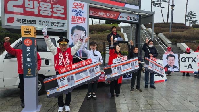 그러면서 "12년 동안 기재위원장 으로 예결위 간사하면서 그 흔한 쪽지 예산 못 만들어 낸 3호선 운정역, 제가 꼭 이루어내겠다"며 "다수당이 되어 50만 인구의 접경지대에 대한 광역교통 예타 면제 특별법안을 1호 법안으로 만들어서, 대통령실의 힘을 받아 여당 국회의원들 설득시키면 성공시킬 수 있다"고 강조했다.
