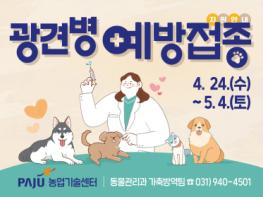 파주시는 4월 24일부터 5월 4일까지 생후 3개월 이상의 임신하지 않은 개를 대상으로 광견병 예방접종을 실시한다.