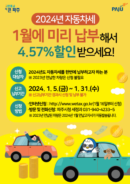 파주시, “자동차세 1월에 한 번에 내고 할인받으세요”