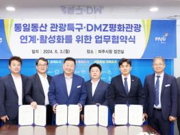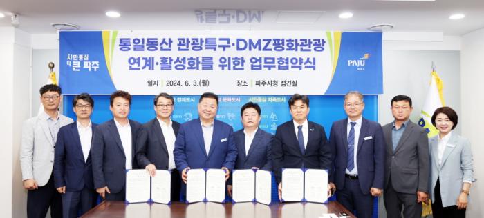 파주시는 지난 3일 시청 접견실에서 ‘통일동산 관광특구·디엠지(DMZ)평화관광 연계·활성화를 위한 업무협약식’을 개최했다.