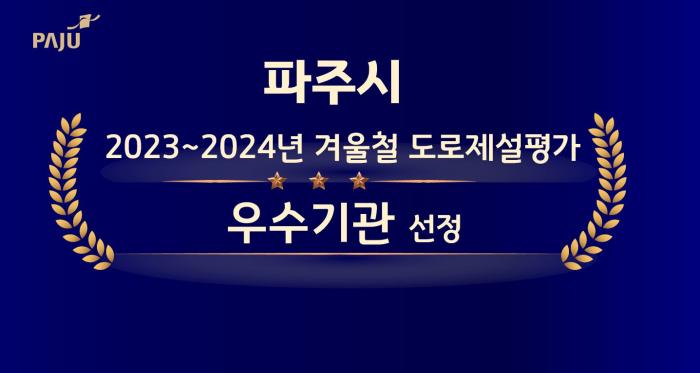 파주시는 경기도에서 주관하는 ’23~’24년 겨울철 도로제설평가에서 우수기관으로 선정됐다.