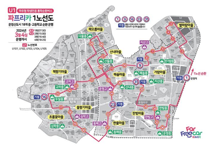 특정학교와 학교 주변 일정 범위의 거리를 오가는 기존의 통학버스와 달리 운정신도시 전 지역, 18개 중.고등학교를 모두 잇는 파주형 통학순환버스는 '파프리카'라는 명칭 속에 담긴 의미처럼 학생들이 모두 함께 자유로이 이용할 수 있는 버스다.