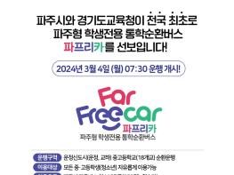 김경일 파주시장은 “파주형 학생전용 통학순환버스는 통학에 어려움을 겪고 있는 학생과 학부모의 고민을 덜어드리는 정책으로, 통학환경을 해결해 주는 것이 학생들을 위한 진정한 교육복지라 생각한다”라며, “우리 학생들이 통학 걱정 없이 일상을 누릴 수 있도록 정책의 완성도를 높여가겠다”라고 말했다.
