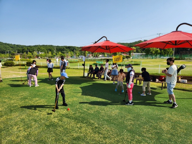 이날 체험에는 초롱초등학교 학생 16명이 참여해 파크골프의 기초를 배우고 퍼팅 연습 등을 했으며, 함께한 학부모와 6곳의 어린이집 원장선생님도 파크골프에 대한 관심을 보였다.